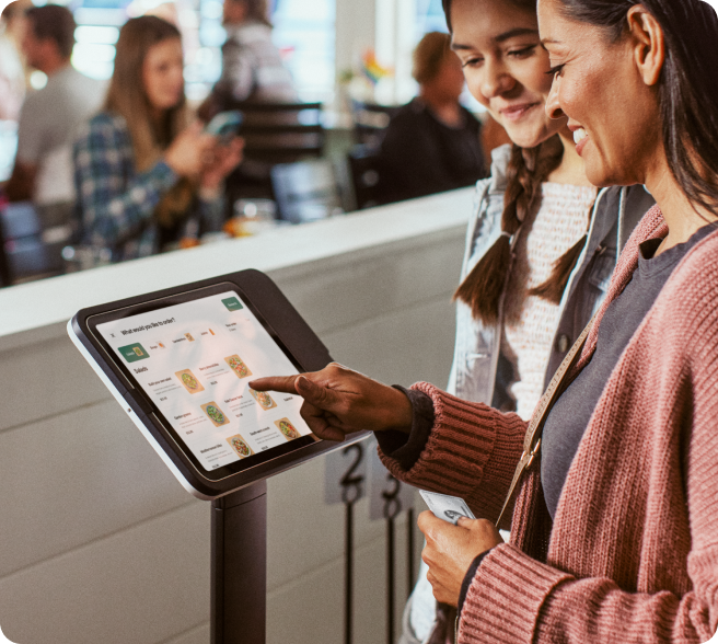 It’s simple – just sign up for a subscription to the Square Kiosk app. Then install Square Kiosk hardware where it makes the most sense for your business. With a self-service kiosk, customers can add items and check out entirely on their own, so waiting times are shorter and staff is freed up to focus on what matter most – your guests.