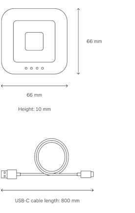 Power modes | Square Reader connects to other devices wirelessly. Charge the Reader’s battery by connecting it to a power source via the included USB-C charging cable. |