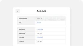 Square Shifts integrates directly with Square Point of Sale. This unified ecosystem fosters harmony in your workplace with easier access and simplified daily tasks. Whether you build a roster or your team swaps shifts, everyone saves time. Square Shifts is also included in Square for Restaurants and Square for Retail.