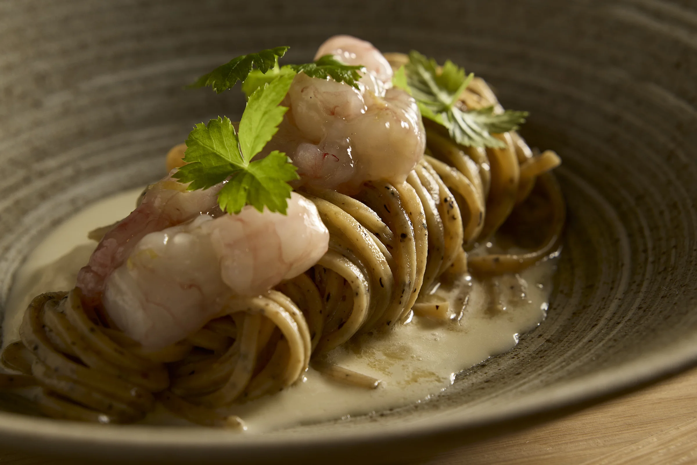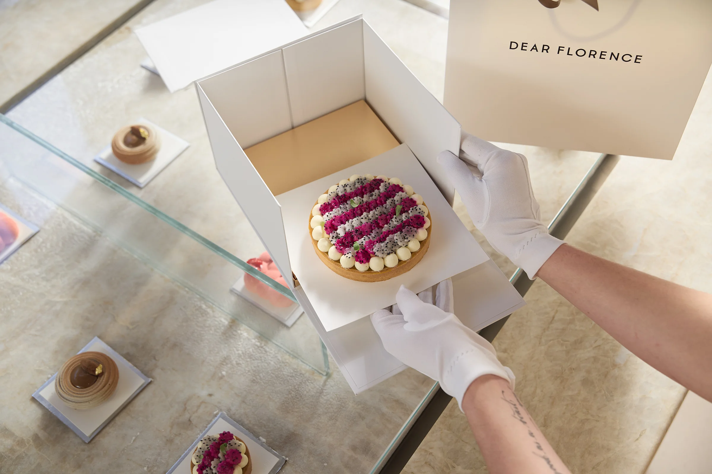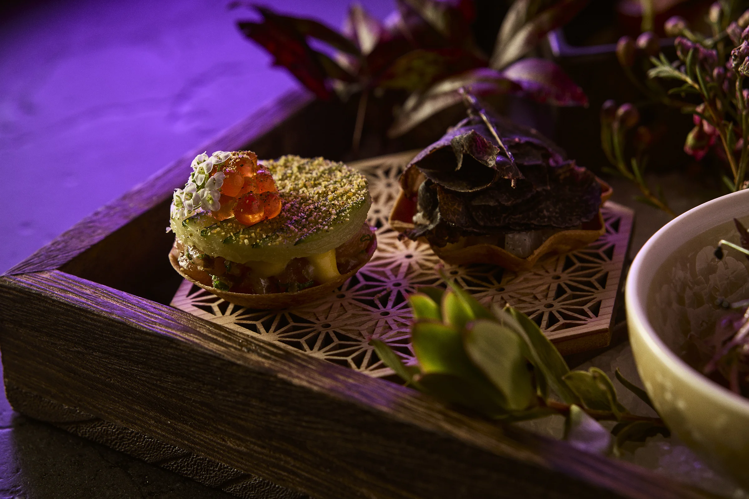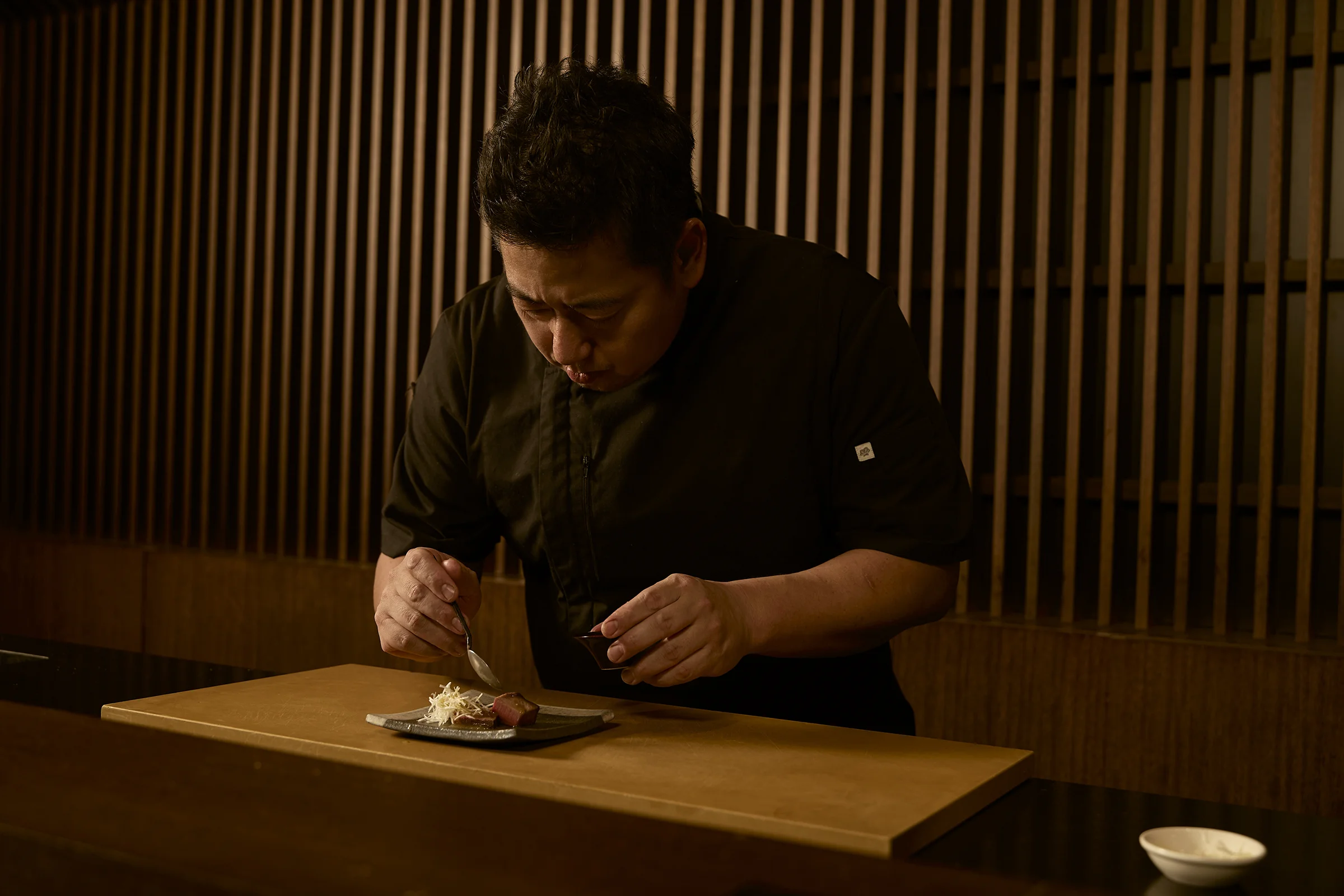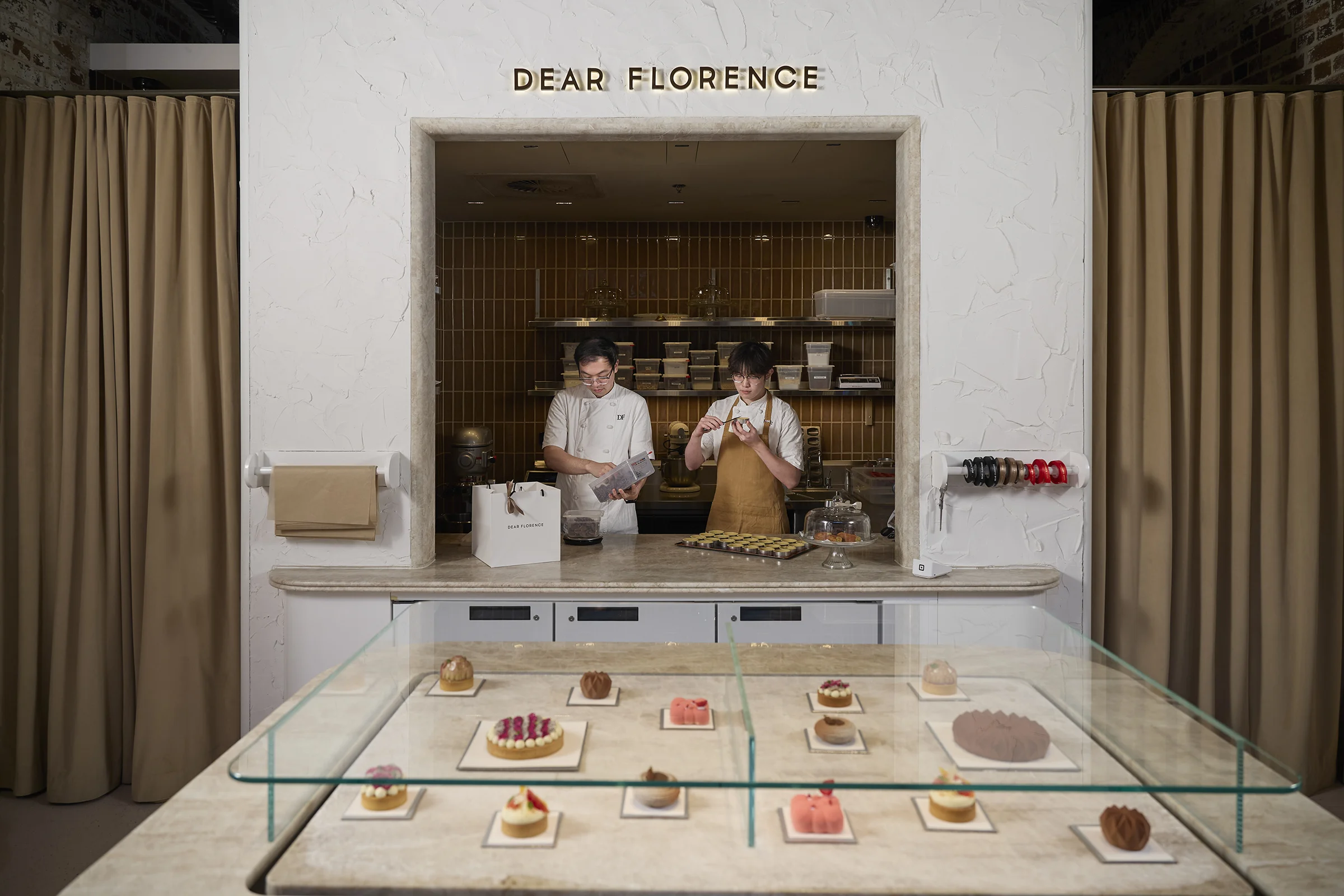 Each of the six venues tells its own story. Ibushi greets guests with chefs cooking skewers over charcoal and a sweeping, golden wire sculpture reminiscent of rising smoke suspended above. Garaku brings theatre to fine dining as each course is crafted with precision and the chefs’ movements form a subtle, graceful performance. Five fuses European cuisine with Japanese elements, layering flavours, textures and aromas that draw diners into the full spectrum of the senses. Omakase is pared back to just eight intimate seats, where a single chef prepares each dish before guests with quiet deliberation. At the back, Whisky Thief glows under soft light, offering inventive cocktails and curated spirits to sip and savour. Tucked nearby is Dear Florence, resembling a jewellery case, with glass cabinets displaying delicate cakes and pastries that double as edible gifts.