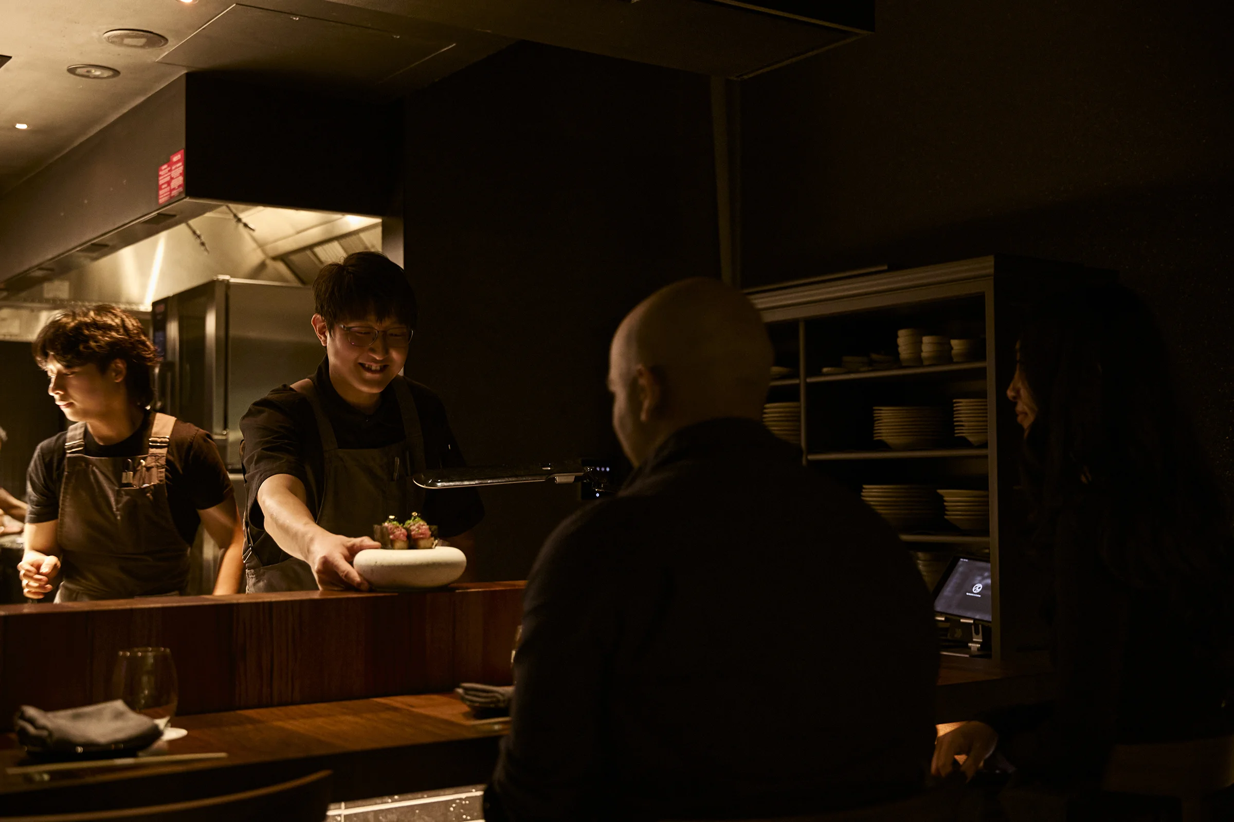 Back-of-house staff value the system equally. Ibushi’s head chef, Chris Kim, says Square keeps orders clear and uncluttered, making it easy to check items quickly during service. Hiroshi Manaka, head chef at Five, appreciates that the docket system not only captures details like allergies or special occasions but also keeps track of courses across an extended menu, helping kitchen operations flow with precision.