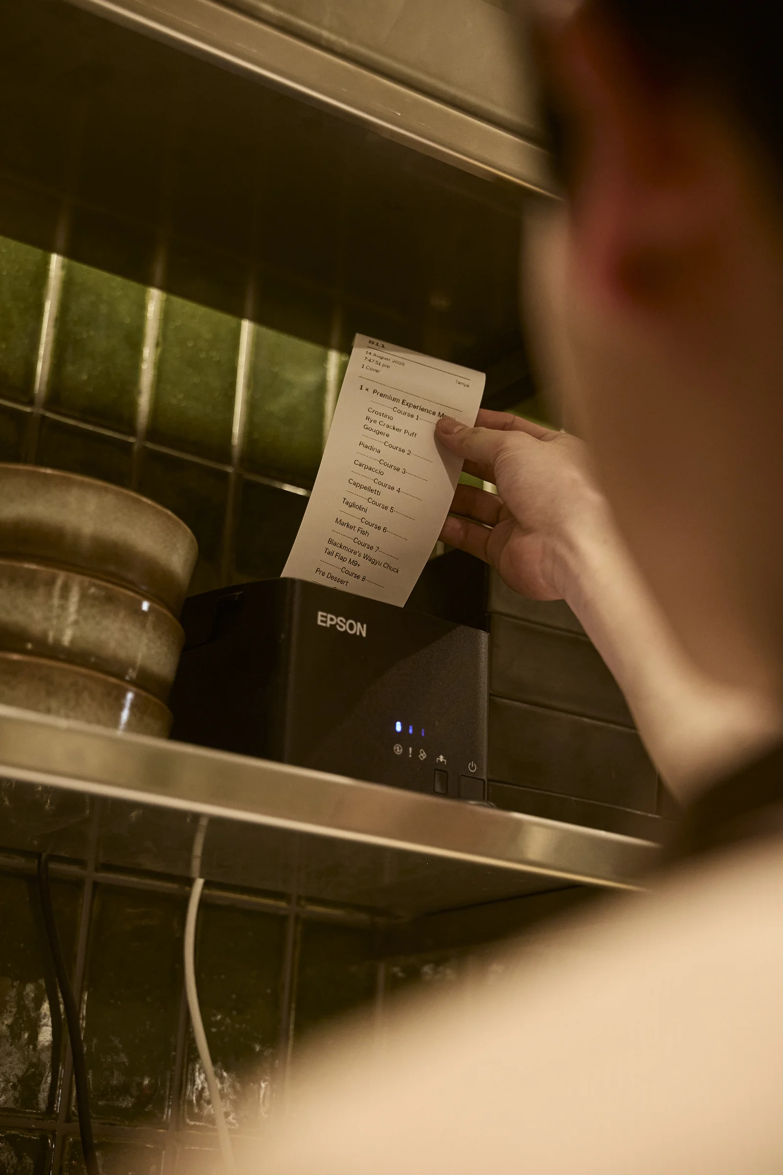 We use Square for Restaurants for the dockets, which makes it easy to control dish by dish, especially since we have a menu degustation including 11 courses. We can understand straight away what’s going on – when the first dish is gone, and which courses are away. It’s easy to understand for every single chef.