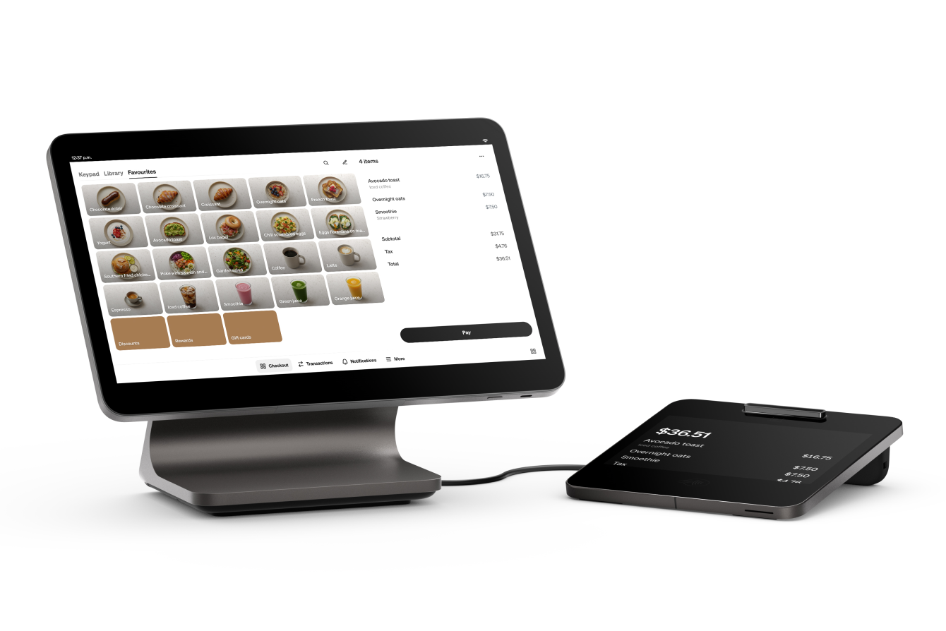 ⁵Offer expires March 16, 2026, at 11:59 p.m. PST or while supplies last, whichever comes first. Offer for 25% off cost of one Square Register, Square Handheld, Square Terminal, Square Stand, or Square Kiosk, excluding applicable taxes.  Each code is limited to one redemption per New-to-Square Hardware account holder. Valid for Square customers located in Canada only with a Canadian bank account. Offer not valid with guest checkout. Square reserves the right to modify, revoke or cancel the offer at any time. This offer cannot be combined with any other offer. Void where prohibited, not redeemable for cash, and non-transferable.
