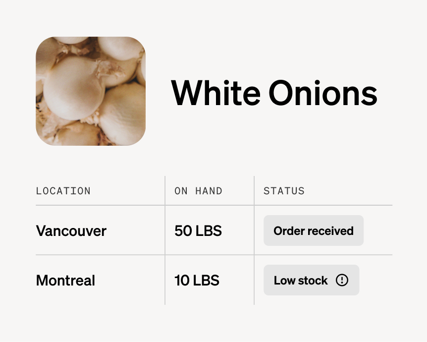 See inventory across all your restaurants from one dashboard, so you can make transfers and ordering decisions instantly.