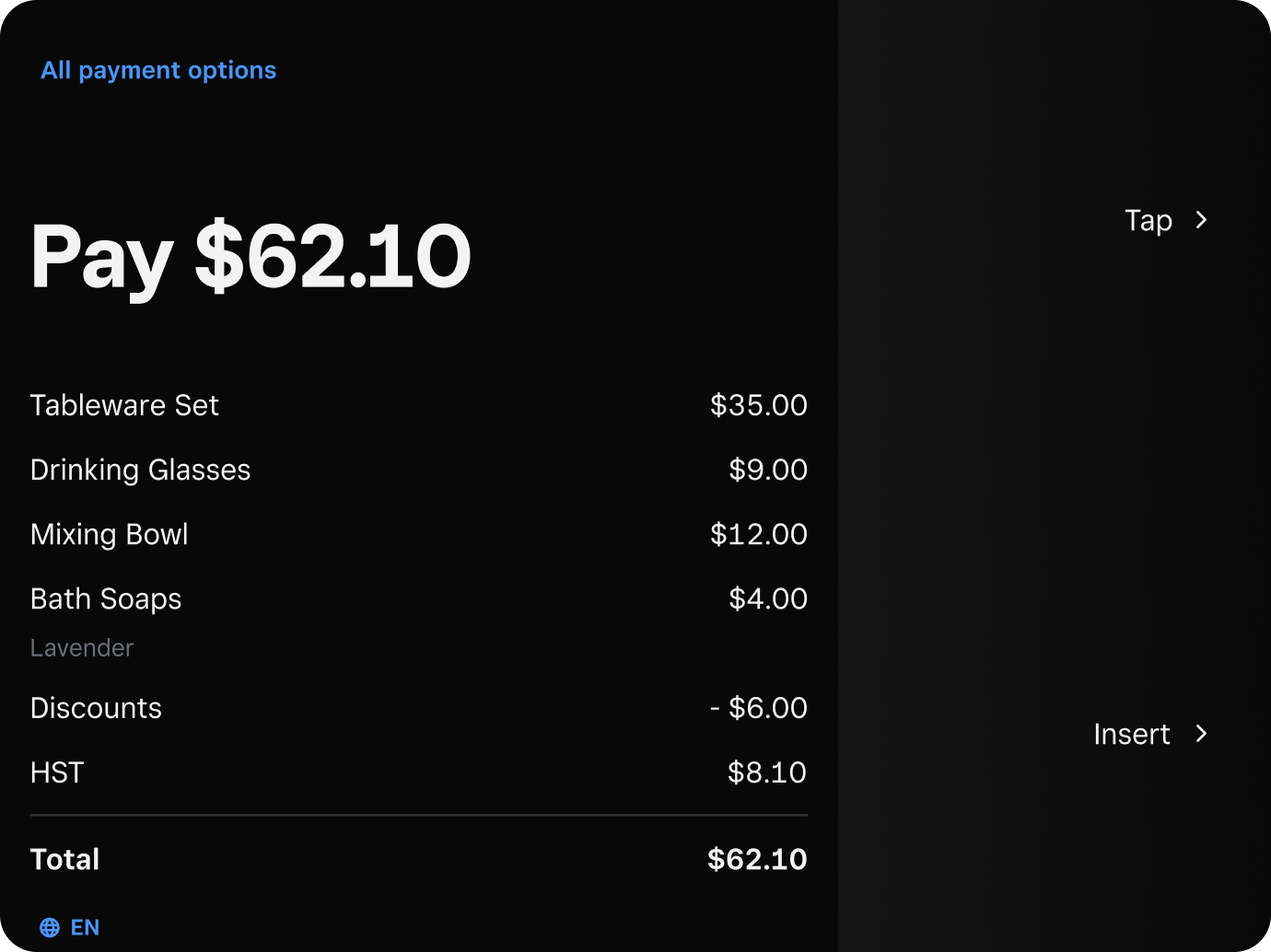 ²Offline payments are processed automatically when you reconnect your device to the internet and will be declined if you do not reconnect to the internet within 24 hours of taking your first offline payment. Interac debit cards are not compatible with offline payments. Any offline transaction attempted with an Interac debit card will auto-decline upon regaining connectivity. By enabling offline payments, you are responsible for any expired, declined or disputed payments accepted while offline. Square is unable to provide customer contact information for payments declined while offline. Learn more about how to enable and use offline payments here.