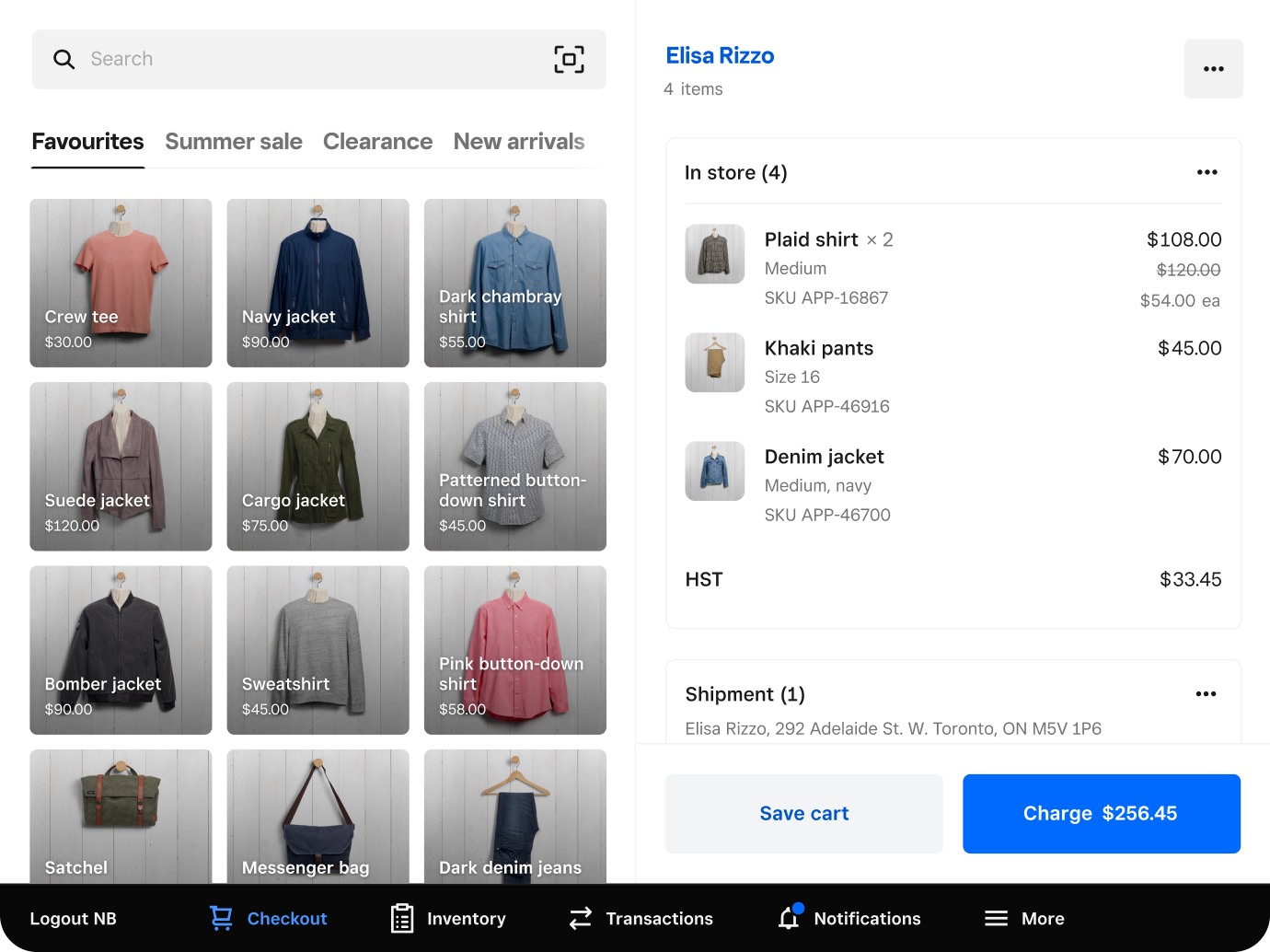 Add menu items, products, services or custom packages to a single item library. Ring up sales quickly with a custom item grid and always know what’s in stock.