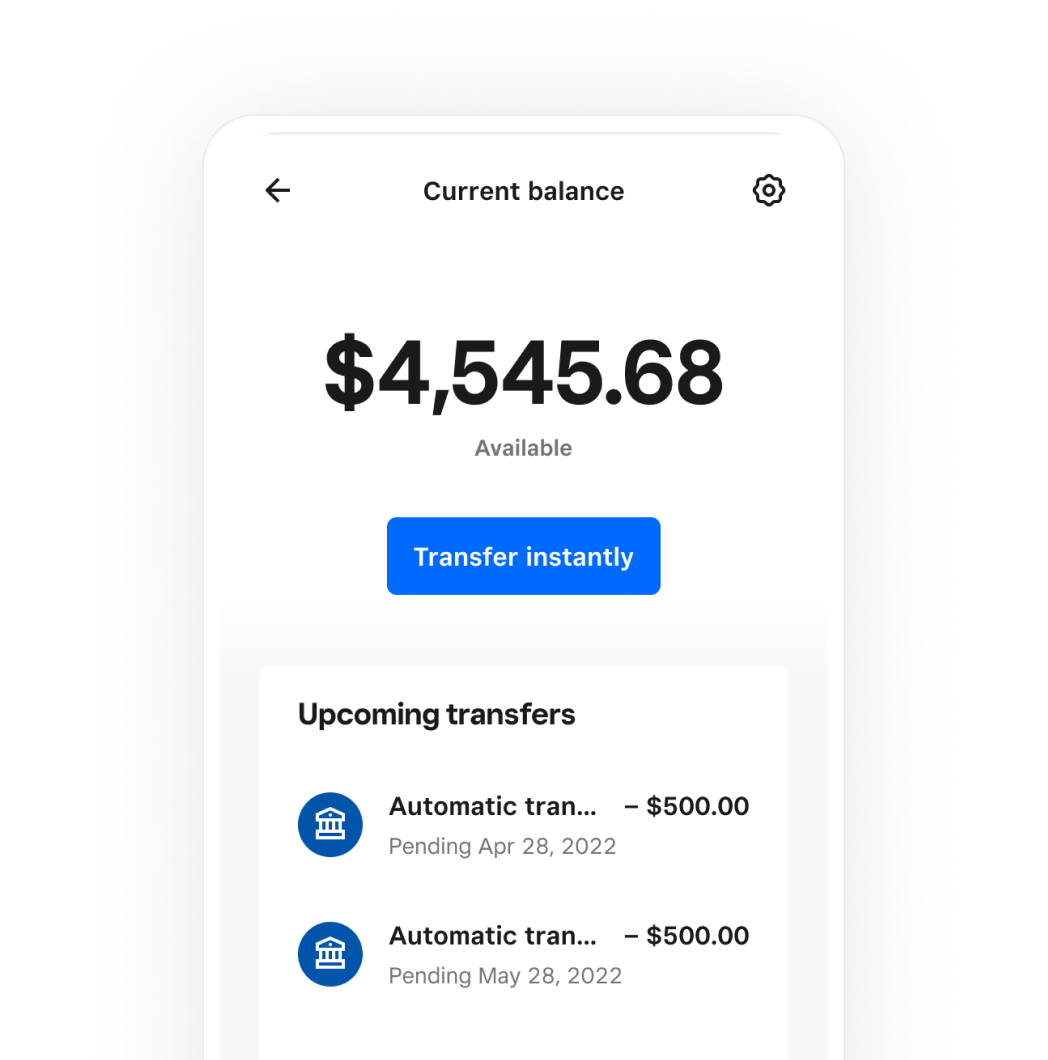 Transfer funds to an external bank account for free the next business day or instantly for a fee.1