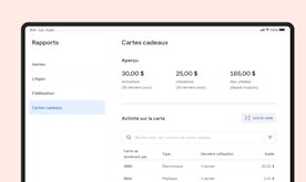 Les Cartes cadeaux Square sont entièrement intégrées à votre solution de point de vente, ce qui permet de faire des rapports complets et d’effectuer le suivi.