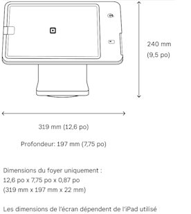 Poids | Square Stand : 2 013 g (4 lb, 4 oz) Ce poids n’inclut pas l’iPad et les accessoires ajoutés |