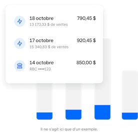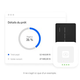 Tous les prêts sont émis par Square Canada, Inc. Les frais réels dépendent de l’historique de traitement des cartes de paiement, du montant du prêt et d’autres facteurs d’admissibilité. Un paiement minimal correspondant à 1/18 du solde initial du prêt est dû tous les 60 jours, et le remboursement de la totalité du prêt est exigé dans un délai de 18 mois. L’admissibilité à l’offre de prêt n’est pas garantie. Tous les prêts font l’objet d’une approbation. Non disponible au Québec. Des conditions générales s’appliquent.
