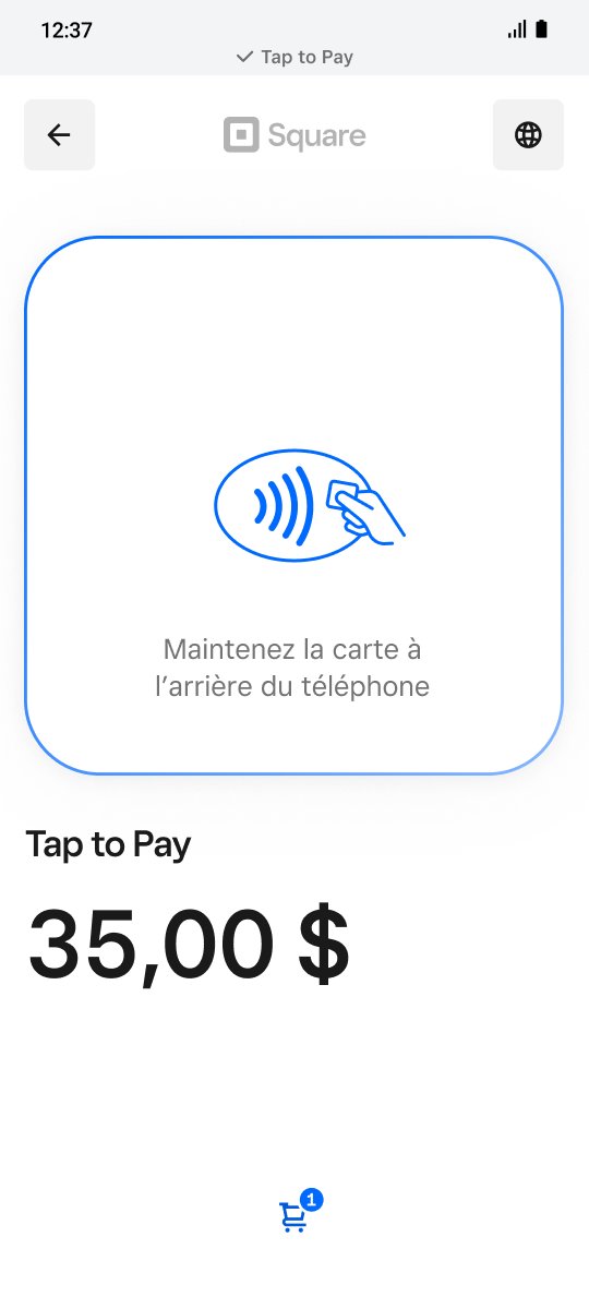 Les limites de Tap to Pay on Android sont celles fixées par l’institution bancaire du titulaire de la carte et est généralement de 250 $ au Canada. Les transactions par carte passée supérieures à la limite ne sont pas prises en charge par Tap to Pay on Android. Vous devrez inviter votre client à utiliser une autre mode de paiement, comme la saisie manuelle de la carte.