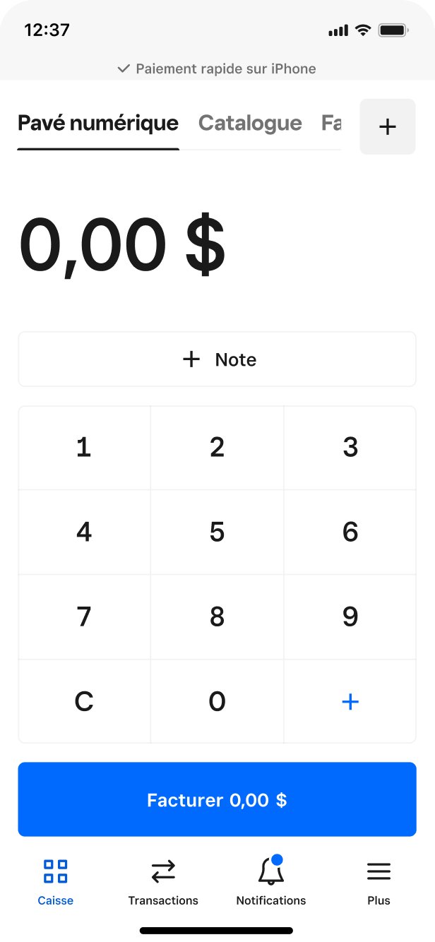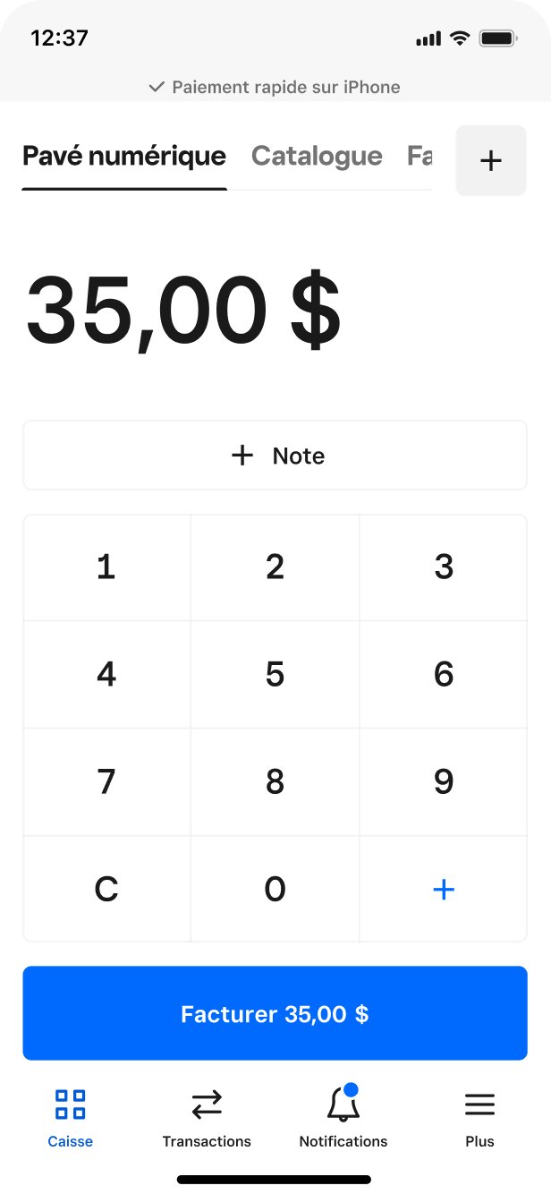 - Activez Paiement rapide sur iPhone, puis ajoutez un article ou saisissez un montant.