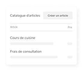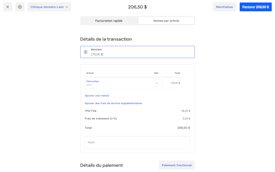 Une facturation rapide est effectuée quand vous souhaitez saisir uniquement le montant de la transaction. Une vente par article est possible après la configuration d’un catalogue d’articles pour vos articles ou vos services, ce qui vous permet d’avoir un meilleur aperçu des ventes et de donner à vos clients des reçus plus détaillés.