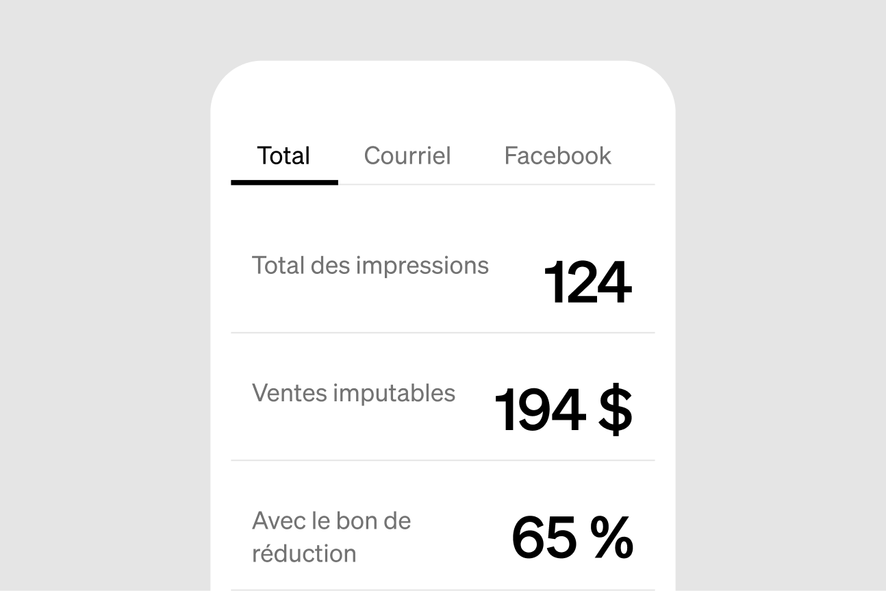 Dans le Tableau de bord Square, vous pouvez consulter des rapports pour mesurer les résultats de chaque campagne, notamment les taux d’ouverture, les taux de clics, les revenus et d’autres mesures de l’engagement client. Vous pouvez également voir combien de bons de réduction ont été utilisés dans Solution PDV Square ou sur Vente en ligne Square.