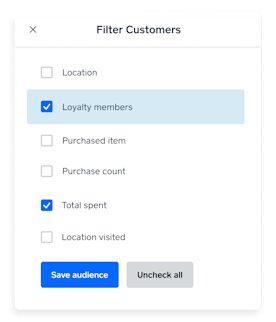 Stay on top of customer service with smart groups that organize your customers based on marketing subscribers, loyalty participants, lapsed customers and more.