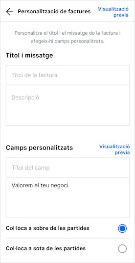| Afegeix camps personalitzats a qualsevol factura | No |