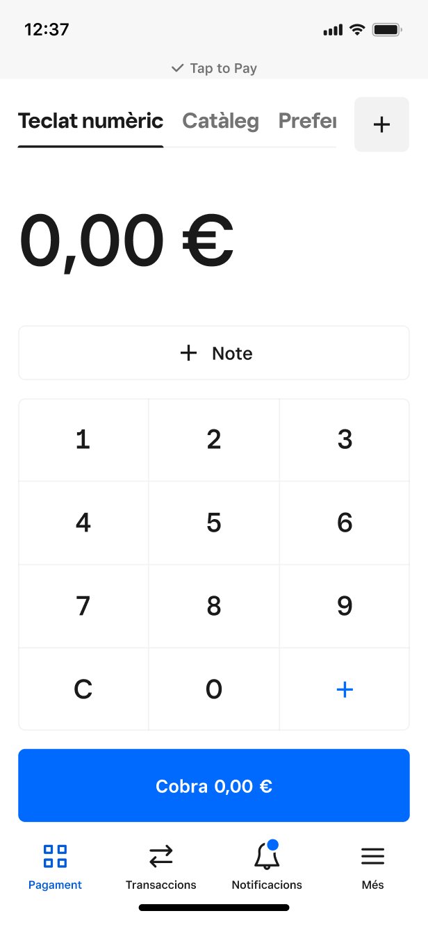 - Activa Tap to Pay a iPhone i, a continuació, afegeix un article o introdueix un import.