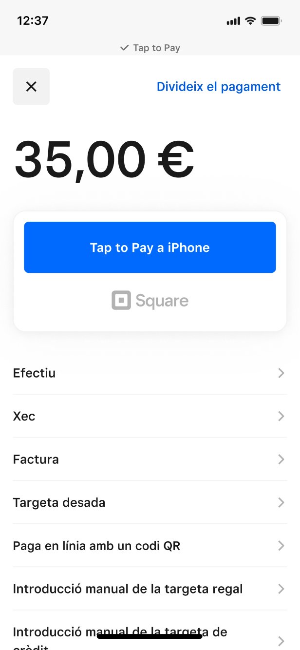 Accepta pagaments físics sense contacte directament a l’iPhone, des de targetes de dèbit i crèdit fins a carteres digitals com ara Apple Pay.