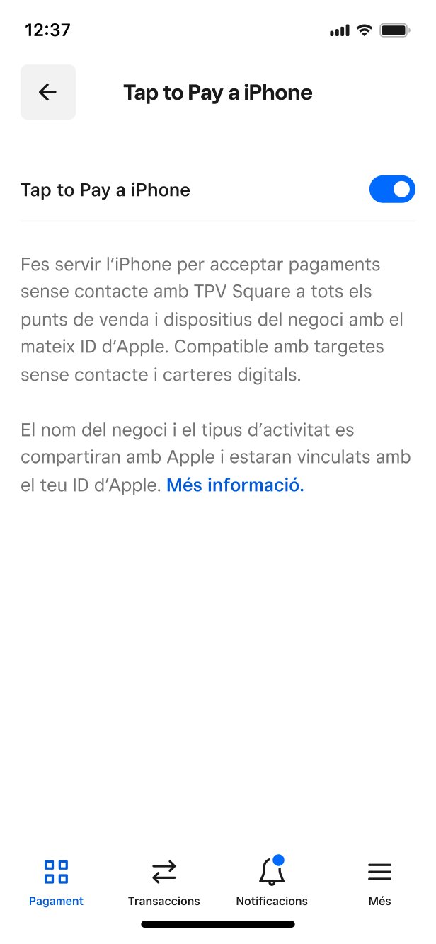 Tap to Pay a iPhone és, senzillament, una altra manera d’acceptar pagaments. És compatible amb qualsevol hardware de Square dels que fas servir i transfereix els diners que guanyes directament al teu compte de Square.