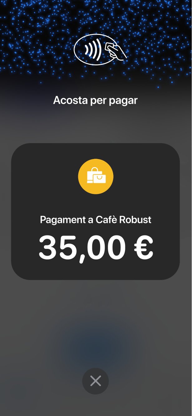 Accepta qualsevol tipus de pagament físic sense contacte directament amb l’iPhone, des de targetes de dèbit i crèdit fins a carteres digitals com ara Apple Pay.