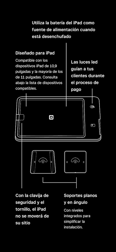 Peso | Square Kiosk: 710 g El peso no incluye el iPad ni cualquier otro accesorio |