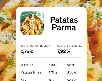 Lleva un seguimiento de las recetas, los modificadores complejos y los escandallos para identificar el coste real de los platos y la rentabilidad de cada ingrediente.