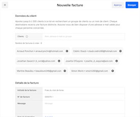 Gagnez du temps lors de votre processus de facturation en envoyant la même facture à plusieurs clients à la fois.