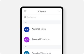 Créez votre Répertoire de clients en ajoutant automatiquement des détails sur les clients tels que le nom, l’adresse e-mail et le numéro de téléphone lorsque vous créez des factures et encaissez des paiements. Vous pouvez également ajouter des notes pour faire un suivi de votre travail.