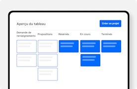 Visualisez l’ensemble des tâches d’un même projet en un coup d’œil. Organisez, personnalisez et suivez les étapes de vos tâches en cours ainsi que de celles à venir pour en faire facilement le suivi depuis un même endroit.