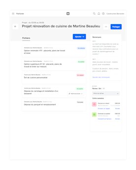 Proposez des options multiples pour vos articles et vos services dans une seule estimation et passez moins de temps à évaluer la portée et le coût des projets avec vos clients.