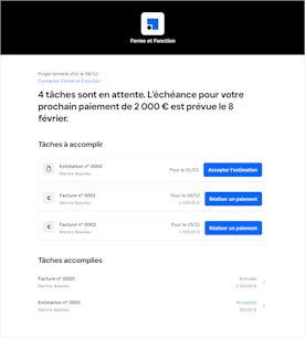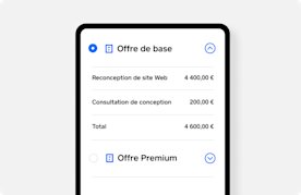 Fournissez aux clients une estimation qu’ils peuvent approuver où qu’ils se trouvent. Convertissez facilement les estimations acceptées en factures.
