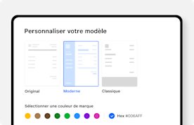 Faites votre choix parmi de multiples mises en page et sélectionnez celle qui convient le mieux à votre entreprise. Mettez votre logo à jour, choisissez la couleur de votre marque et prévisualisez le tout une fois que vous aurez terminé.