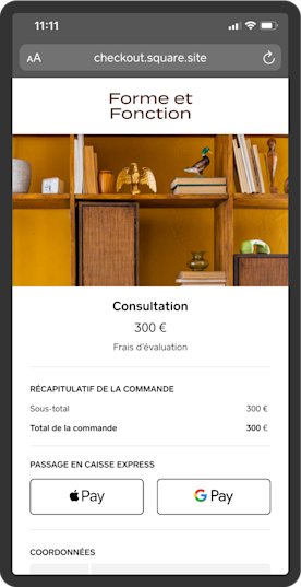Il n’y a pas de frais mensuels pour l’utilisation de Liens de paiement Square. Vous ne paierez que les frais de traitement standard de Square pour l’e-commerce, soit 1,4 % + 0,25 € par transaction pour les cartes en provenance de l’UE et de l’EEE ou 2,9 % + 0,25 € par transaction pour les cartes en provenance du Royaume-Uni et de pays en dehors de l’EEE. Vous pouvez en outre accepter divers modes de paiement, notamment Apple Pay, Google Pay et les paiements par carte. Une fois la transaction terminée, les fonds sont transférés sur le compte bancaire que vous avez lié à votre compte Square.