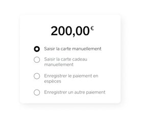 Vous pouvez fractionner n’importe quelle transaction entre différents modes de paiement, y compris les espèces, les cartes cadeaux électroniques Square et plusieurs cartes bancaires.