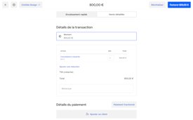 Une facturation rapide est effectuée quand vous souhaitez saisir uniquement le montant de la transaction. Une vente par article est possible après la configuration d’un catalogue d’articles pour vos articles ou vos services, ce qui vous permet d’avoir un meilleur aperçu des ventes et de donner à vos clients des reçus plus détaillés.