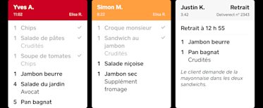 Que les commandes arrivent par le biais de la Solution PDV, du site Vente en ligne Square ou d’applications de livraison comme Deliverect, tout est envoyé et traité directement à la cuisine.