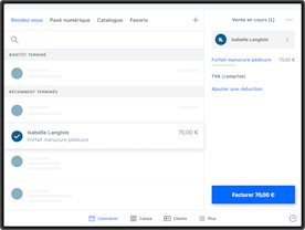 Encaissez les paiements où que vous soyez, acceptez les espèces ou les cartes et configurez des paiements anticipés. Des frais de traitement standard s’appliquent.