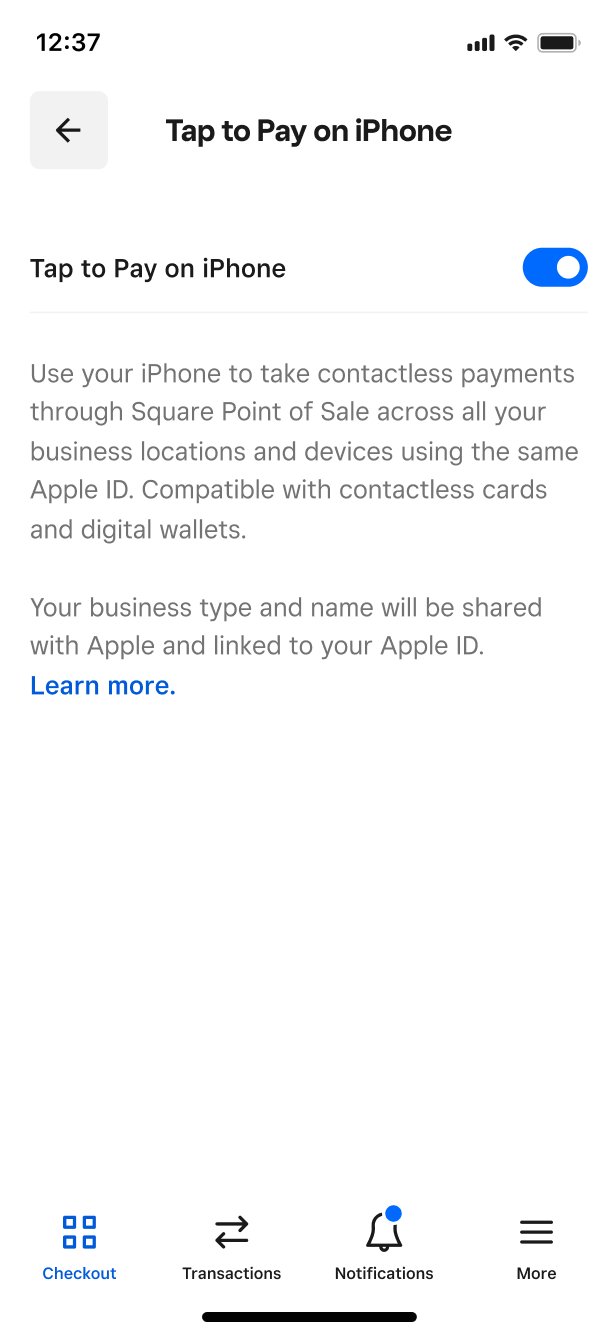 After you download the Square Point of Sale app, you’ll be prompted to connect your Apple ID. Once that’s done, you’re ready to accept contactless payments with Tap to Pay on iPhone.