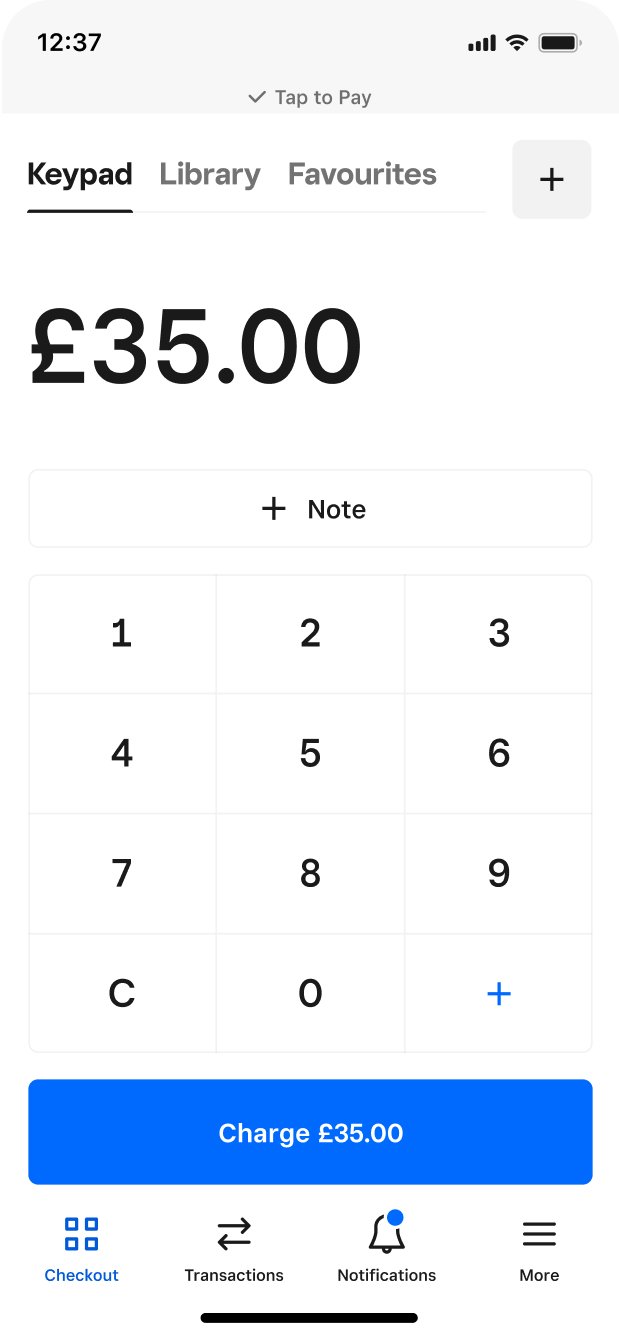 - Enable Tap to Pay on iPhone, then add an item or key in an amount.