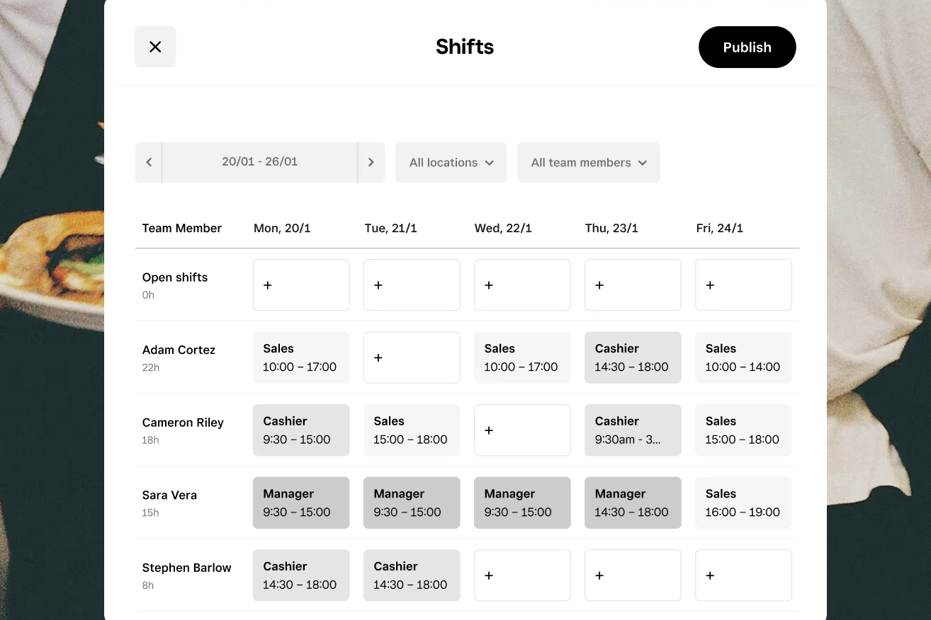 Organise shifts and track hours so your staff are where they need to be during busy service.