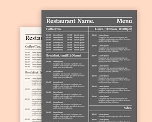 A menu template is a preset, professional-looking template that you can update and customise as many times as you like. It is available in popular file formats like Word, Excel and PDF. A free menu template makes your life easier as you don’t need any design skills. Just add your restaurant name and list what you sell to make your new menu in minutes.