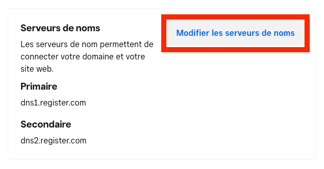 Pour les serveurs de noms, sélectionnez Modifier le serveur de noms.