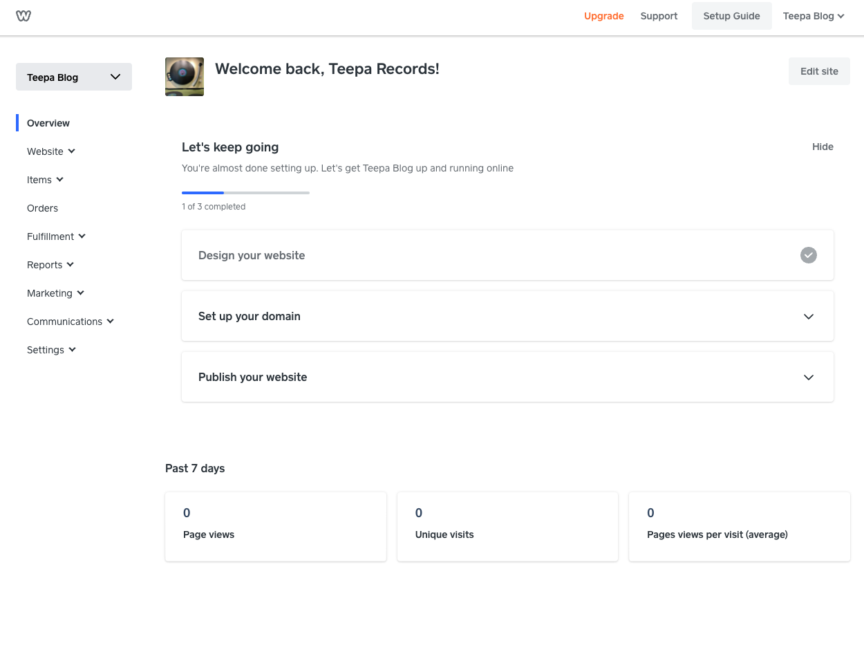 The Weebly Dashboard is the first page you see when you log into your Weebly account, and contains all the information you need about your website. Your Dashboard allows you to customize and manage your websites, set up your online store and see your website activity.