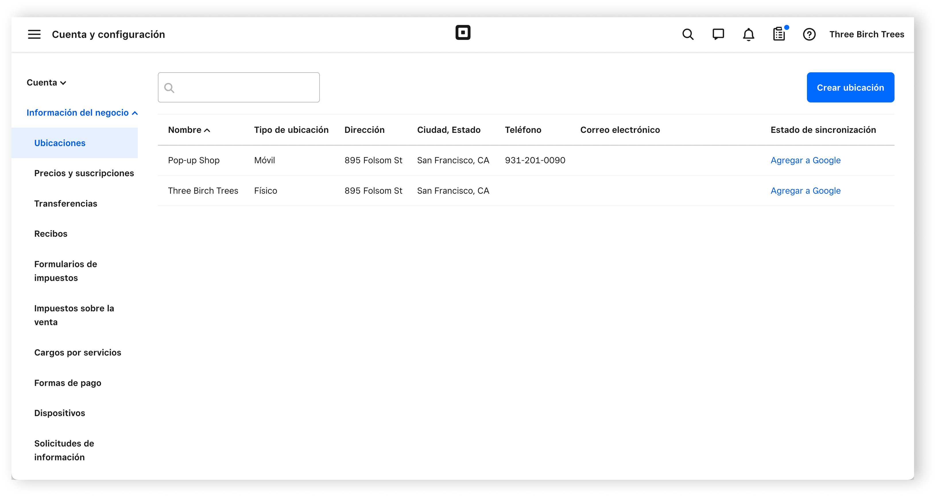 Cualquier modificación que hagas en una sucursal de Square se sincronizará automáticamente con Google.