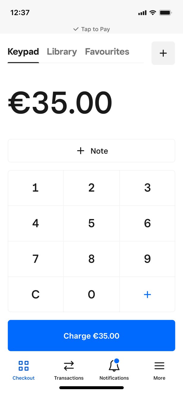 - Enable Tap to Pay on iPhone, then add an item or key in an amount.