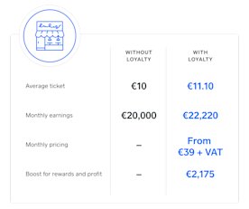 Monthly costs start at €39 + VAT and adjust based on each location’s total loyalty visits per month.