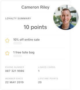View returning customers’ points and reward histories and provide a more personalised experience for each customer with a loyalty programme.