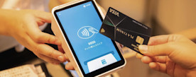 タッチ決済対応マークのあるクレジットカード、デビットカードを決済端末にタッチして、すばやくお会計を済ませることができます。少額の場合サインは必要ないので、会計にかかる時間を減らせます。
