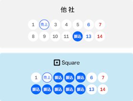 Squareの売上入金は売上額や決済手段にかかわらず、最短翌営業日入金。素早く手元に売上が届くので、あなたのビジネスの資金繰りを円滑にします。