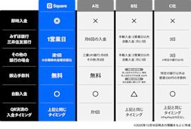 Squareでは、みずほ銀行・三井住友銀行の場合、